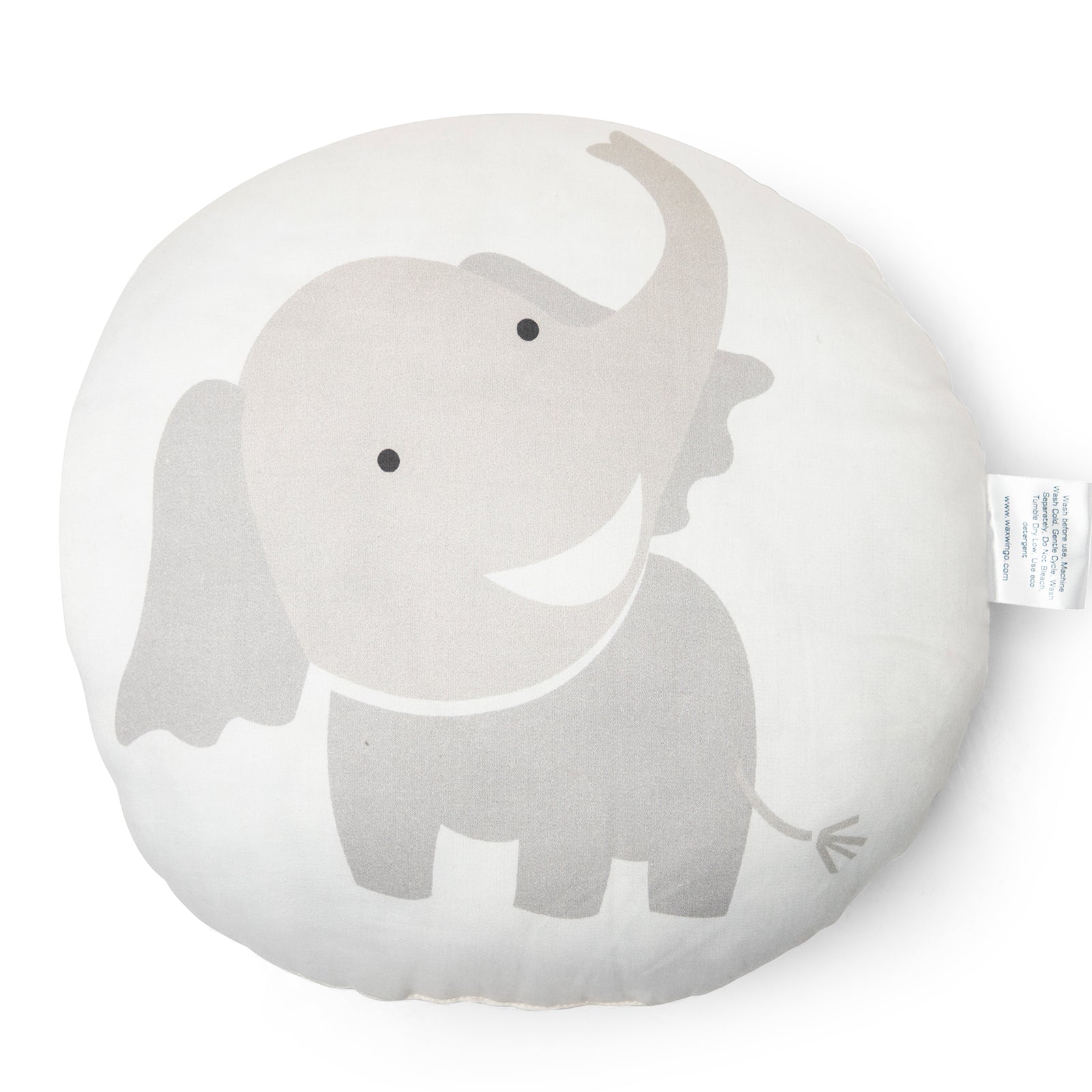 Our adorable Elle shaped cushion, perfect for adding a touch of cuteness to your little one's room! This round cushion features a soft grey elephant print on both sides and is made from Oekotex certified bamboo fabric, ensuring it's gentle and safe for your baby's delicate skin. Its reversible design offers versatility and convenience for use. Add some extra comfort and charm to your baby's nursery with our Elle shaped cushion.