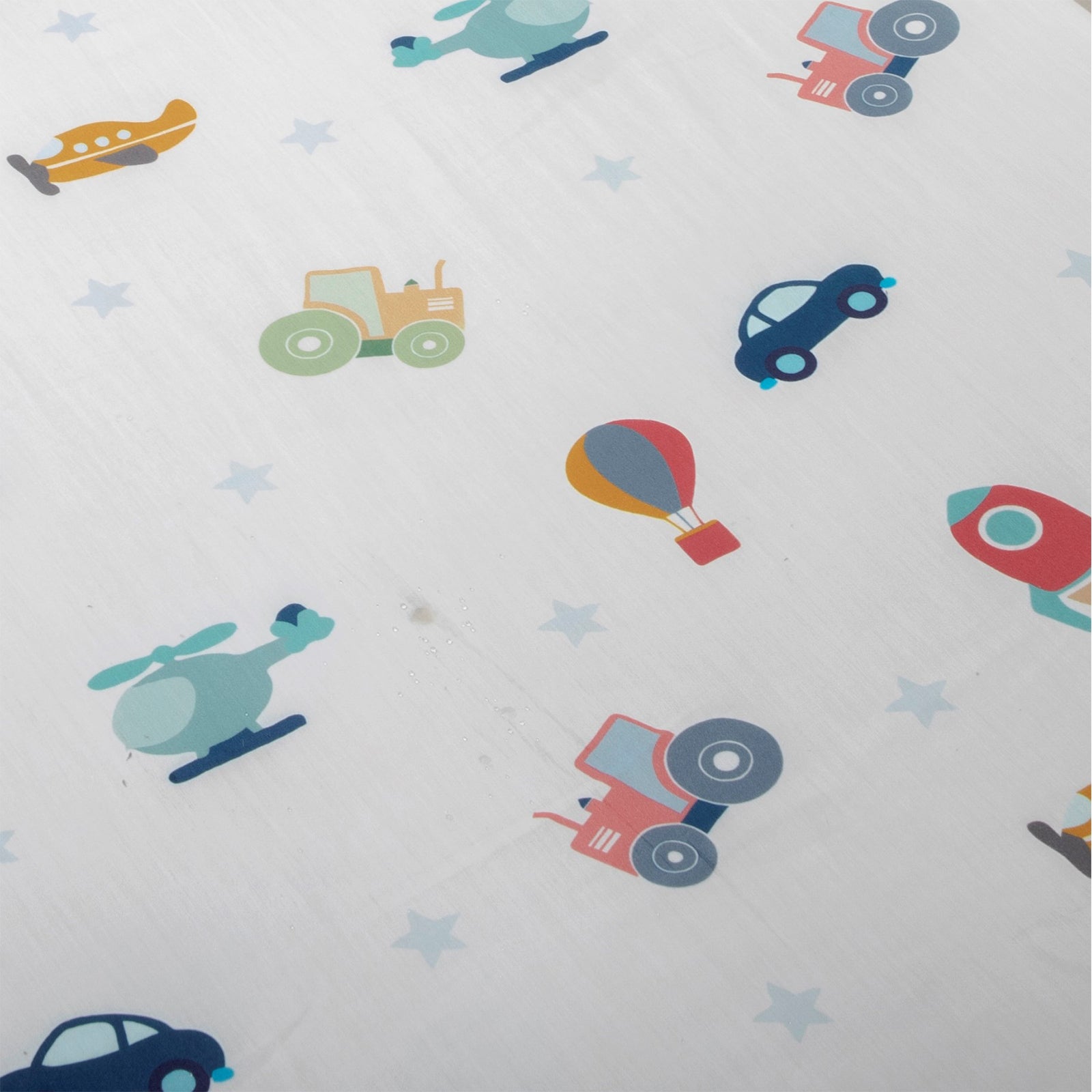 Our Gaddi style fitted sheet and pillow set - a playful collection of multicolored vehicles against a soft white background. Your little ones will love the colorful design, and you'll appreciate the softness and safety of our oekotex certified bamboo fabric. Don't miss out on this eye-catching and best addition to your nursery!