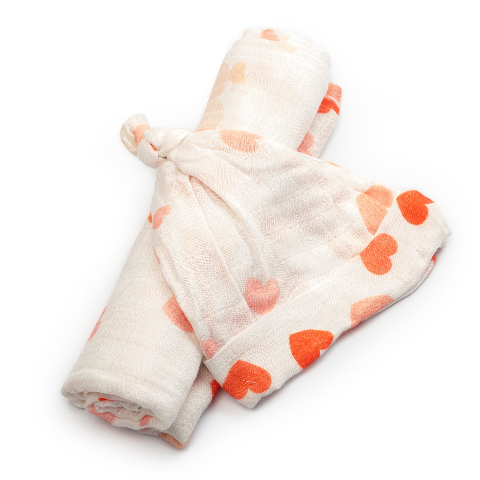 Heartistic ! Our Bamboo Muslin swaddle wrap featuring a beautiful and playful soft tonal heart design that will capture your heart. This unique design is eye-catching and perfect for snuggling your little one with love.