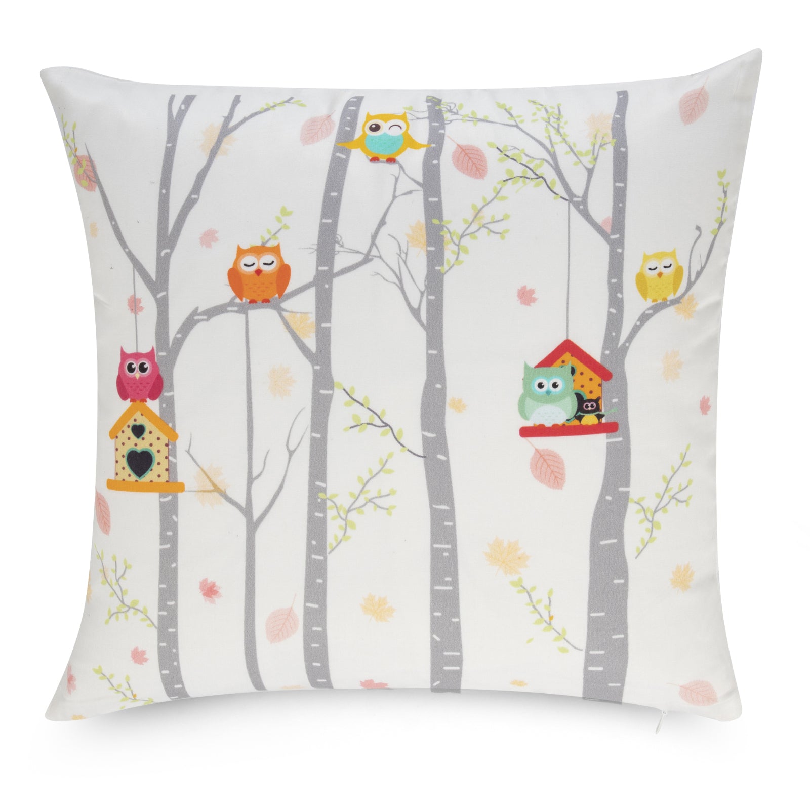 Bring the wonder of the fun forest into your child's bedroom with our Hoot Hoot cushion. The soft white base provides the perfect backdrop for the cute and playful owls featured on the cushion. Whether they're sleeping or playing, these owls will surely put a smile on your child's face. Made from high-quality materials, this cushion is as durable as it is adorable, making it the perfect addition to any kid's room.