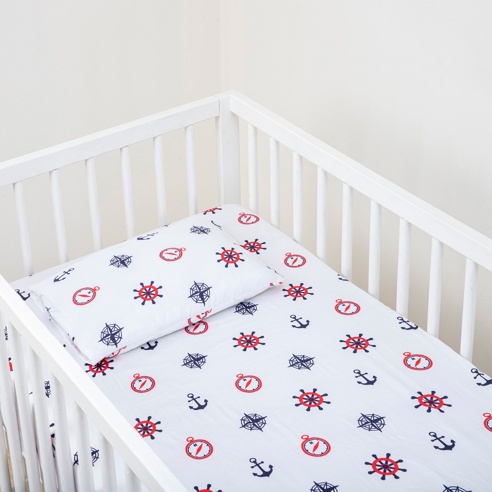 Nautical Collection, our stunning range of baby crib sets featuring beautiful blue and red nautical designs against a crisp white background, evoking images of sailing the high seas. Made from premium bamboo fabric, this collection is gentle on your baby's delicate skin and perfect for creating a cozy and inviting nursery. The bamboo fabric is oeko-tex certified, ensuring it's free from harmful chemicals. Set sail on a nautical adventure with our attractive and stylish Nautical Collection today!