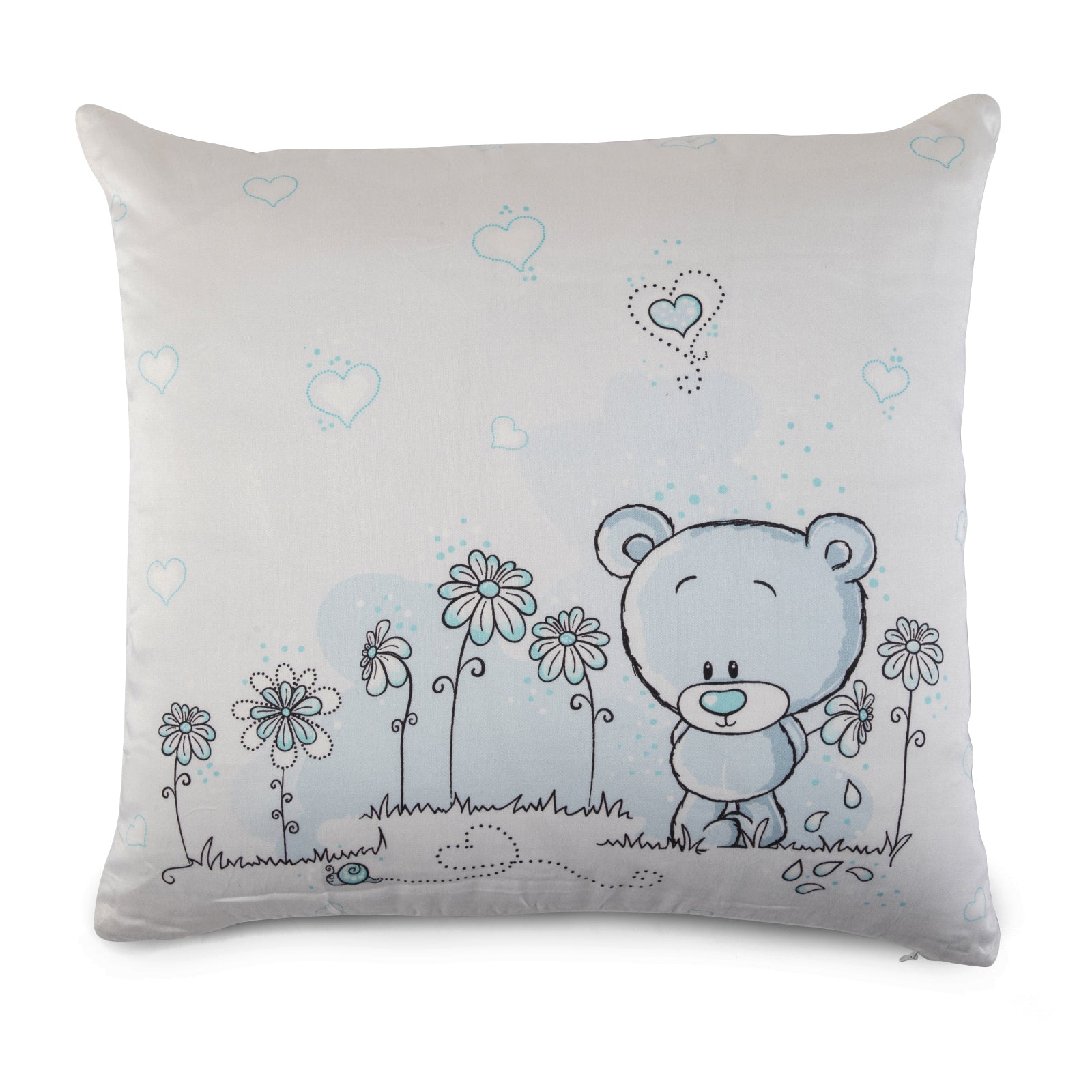 Teddy cushion, features a cute bear in a playful mood, surrounded by beautiful flowers in a whimsical garden setting. The soft pastel background complements the colours of the bear and garden, making it a perfect addition to your child's room. This cushion is not only comfortable but also adds a touch of playful charm to any space. Your child will love to snuggle with cushion!