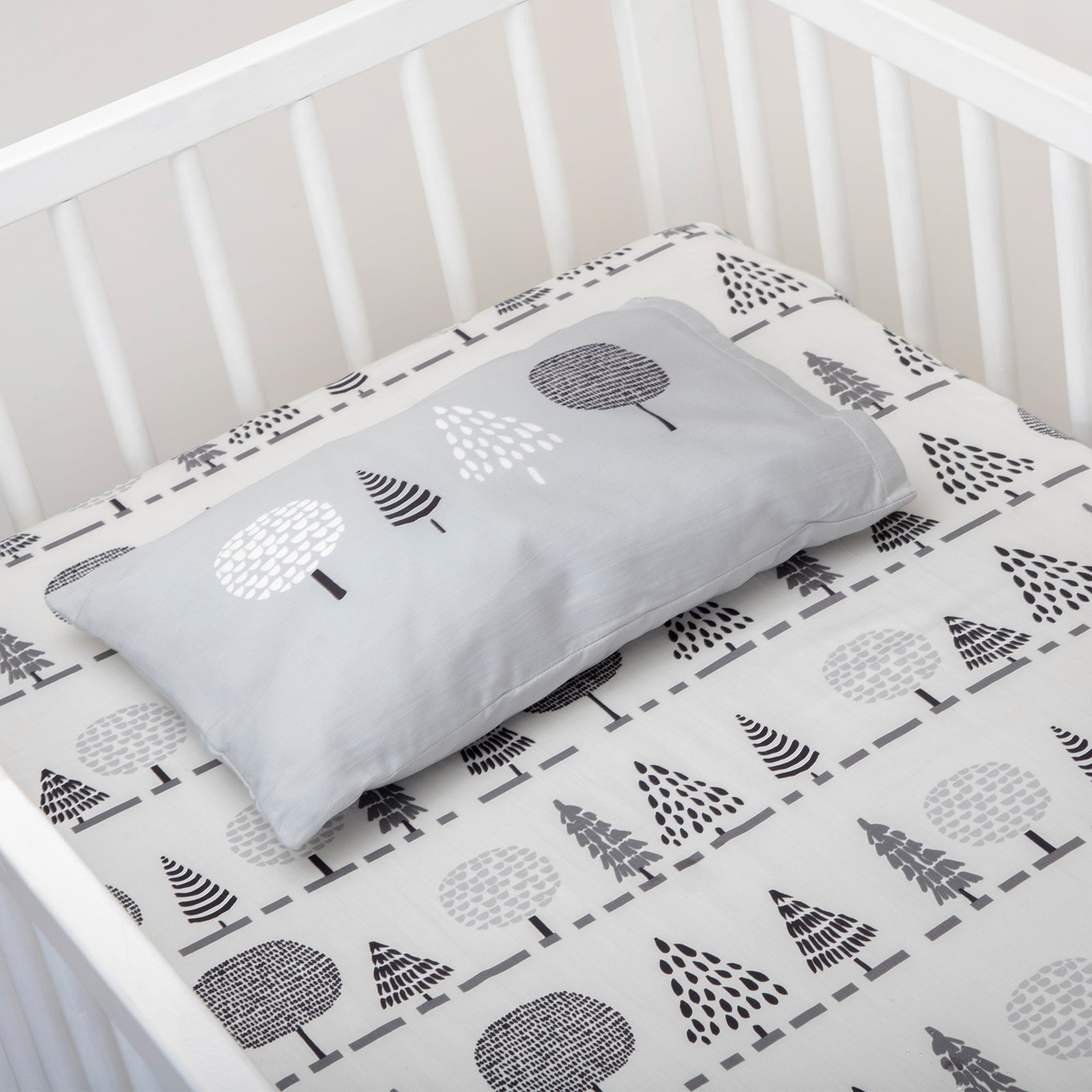 Our Treque fitted sheet and pillow set, featuring an elegant cream base with playful tree patterns in soft colors. The range comes with extra touch of colour in pillows to enhance its beauty. Made with our Oekotex certified bamboo fabric, it's not just stylish but also safe for your little ones. Upgrade your nursery with Treque now!